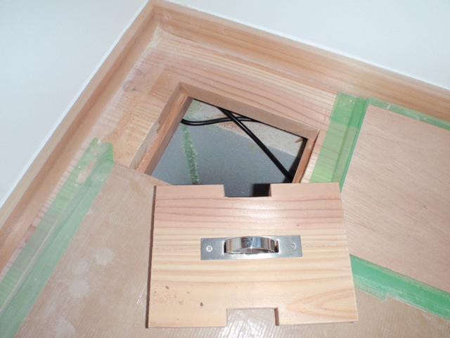 テレビ周りのコンセントやアンテナ関係の床下ボックス。