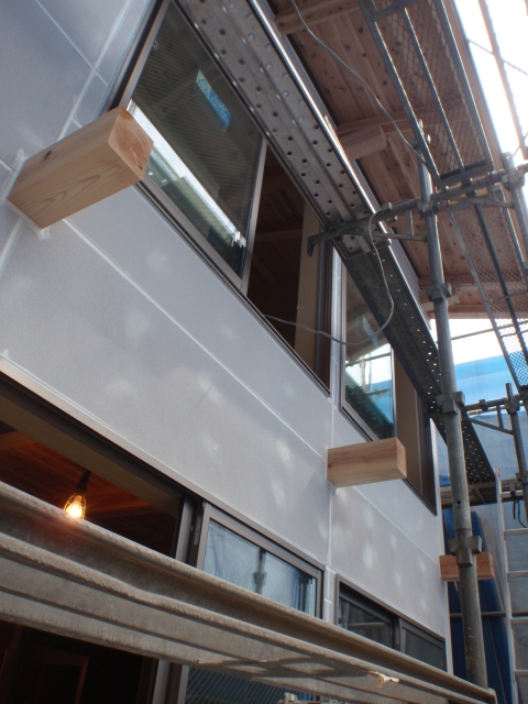外壁のパワーボード工事が終わり次はシーリング工事が。