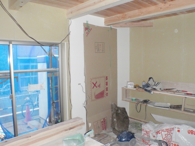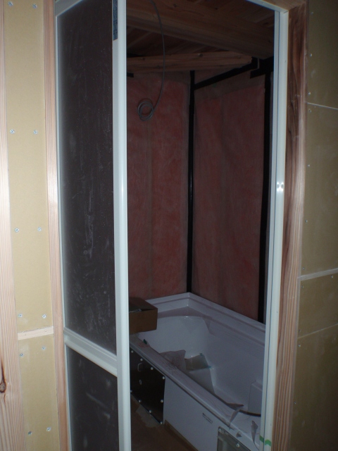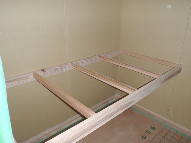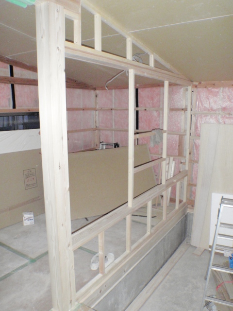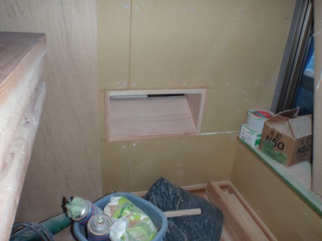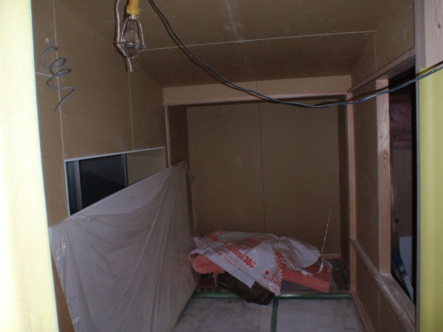 洗面所のパイプスペースも出来あがっていて、石膏ボードも仕上がっていました。
