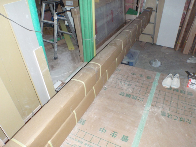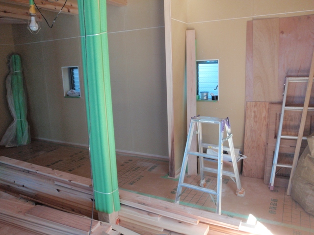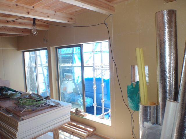 リビング部分は石膏ボード張りが終わっているようです。