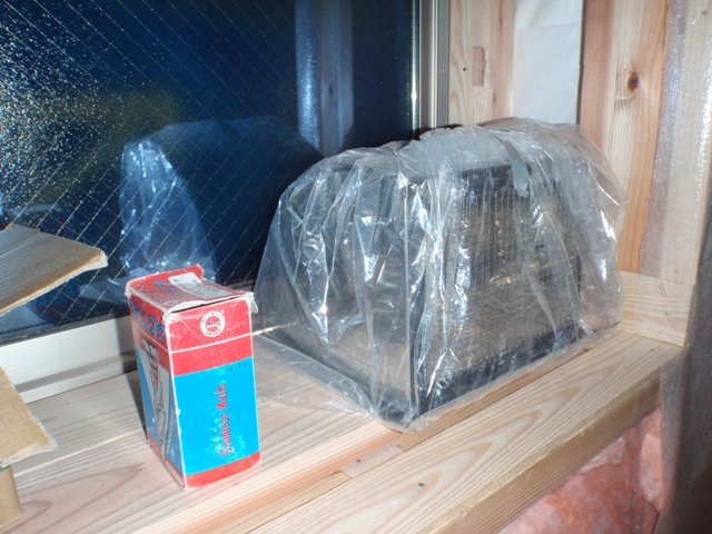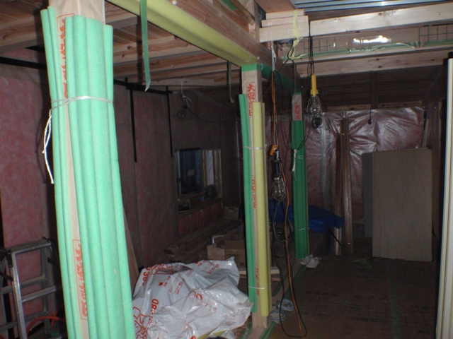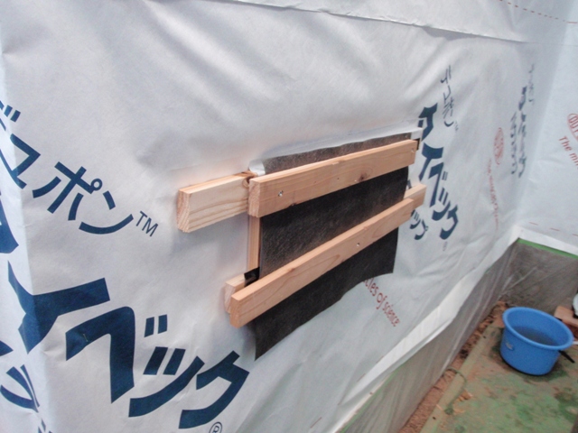 雨が入らないよう養生されています。ここにペリカンポストというポストがつくんだけど外壁の施工がまだなので、しばらくこのままかな。