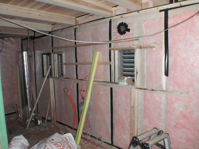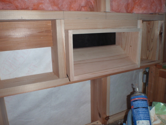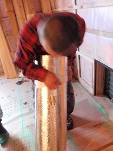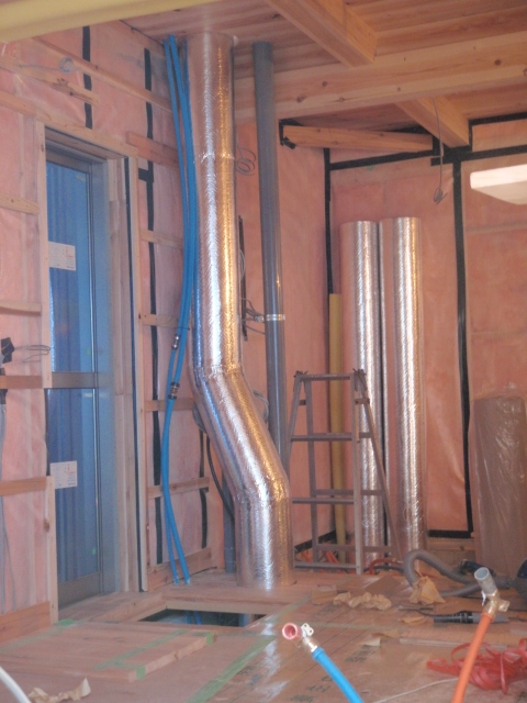 集熱した空気を床下に送るためのダクト制作を18日に引き続き安田さんが施工してくれていました。