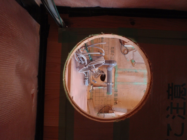 ロフトからダクトが通る穴をあらかじめ空けてあります。
