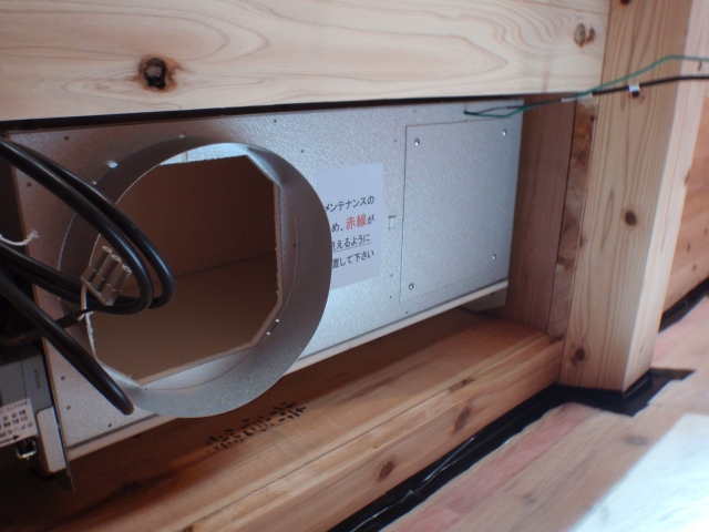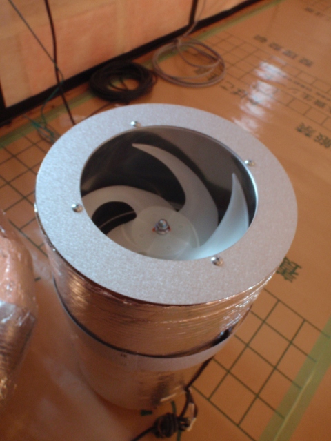 こちらのスクリューみたいな羽根が回り暖かい空気はダクトを通って床下に送られるようです。