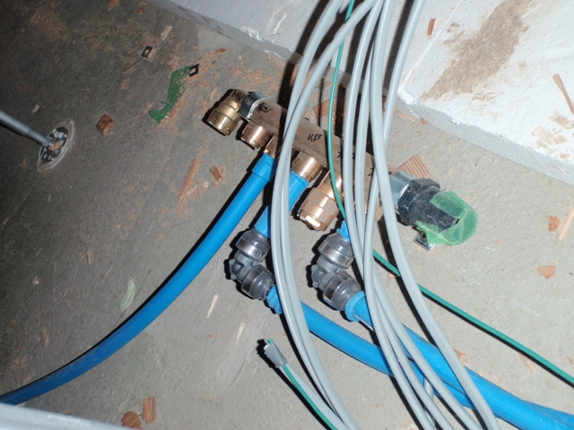 トイレや水回りの配管状況。青が水でオレンジが給湯だから分かりやすいね。