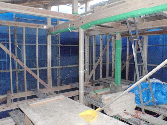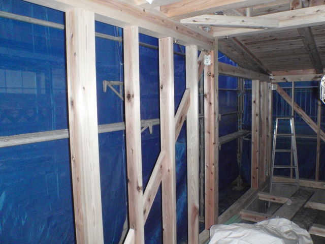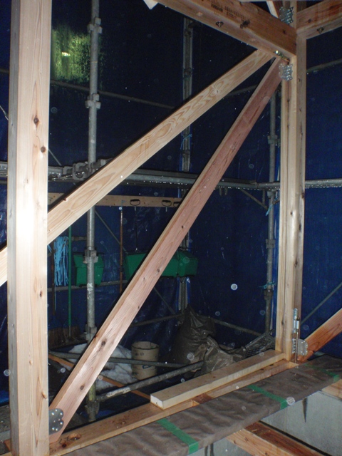まだ仮筋交いを取ってはいないけど、本筋交いが来ています。