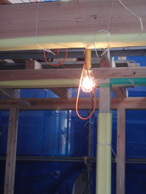 電気屋さん(大越電気)と安田滋さんが電気配線などの件で打合せをしていましたよ。
