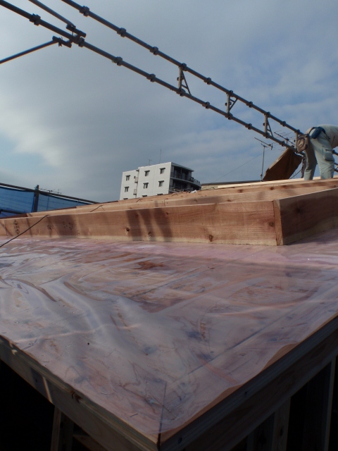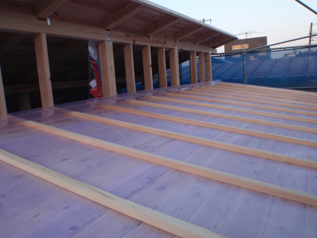 屋根の防水?防湿?シートを張っていました。