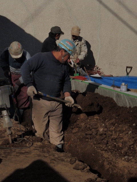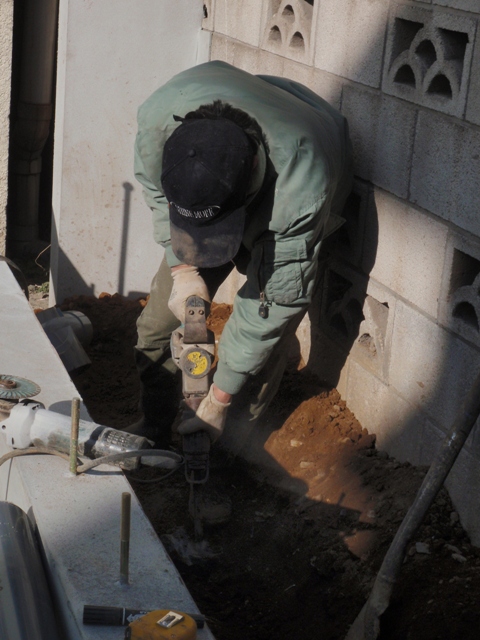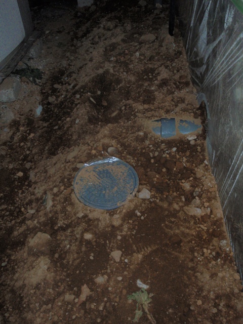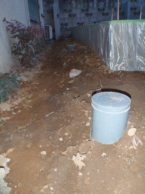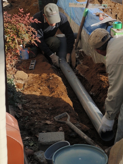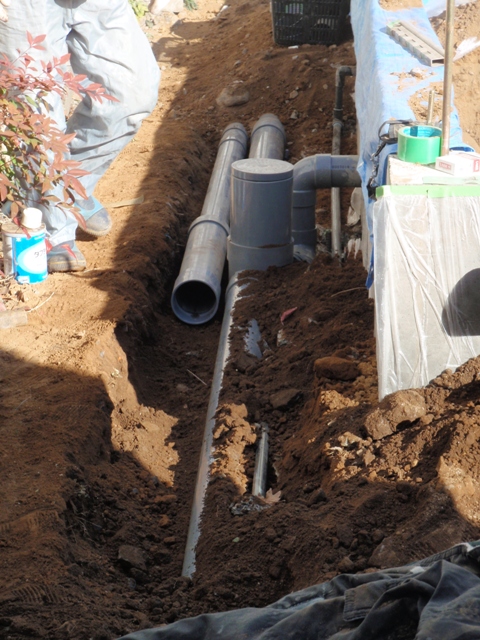 途中から有孔管に代わるというところなんだけど、この日は材料がないとのことでまた後日工事になるようだ。