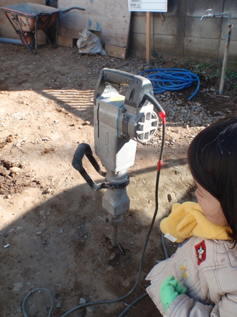 先っちょにスコップのようなものがついたこの機械で土をほぐしてから掘って行くのだ。