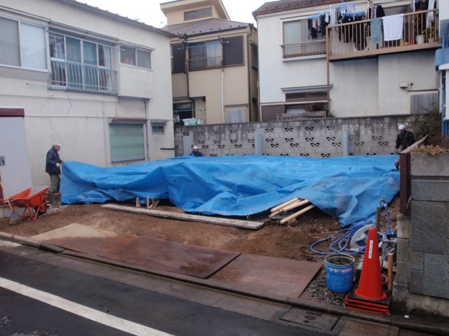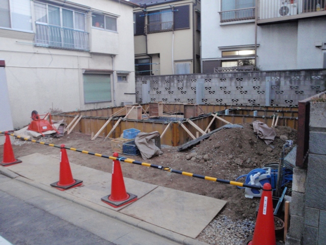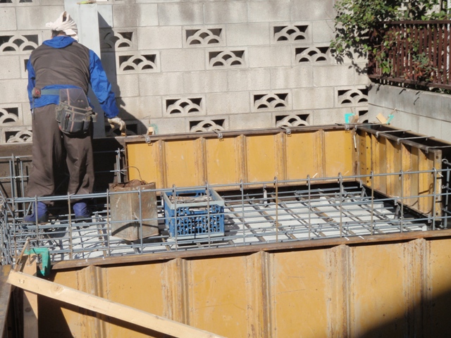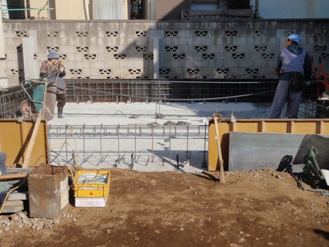 一端退散して、お昼前に行ってみたら、基礎床部分が後一歩のところまで進んでいました。