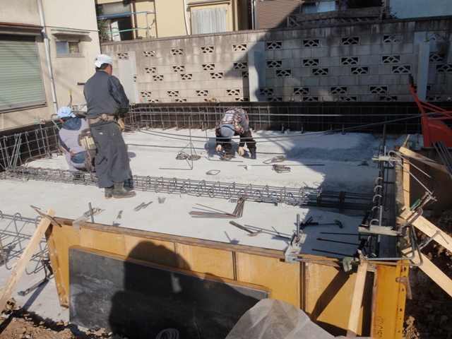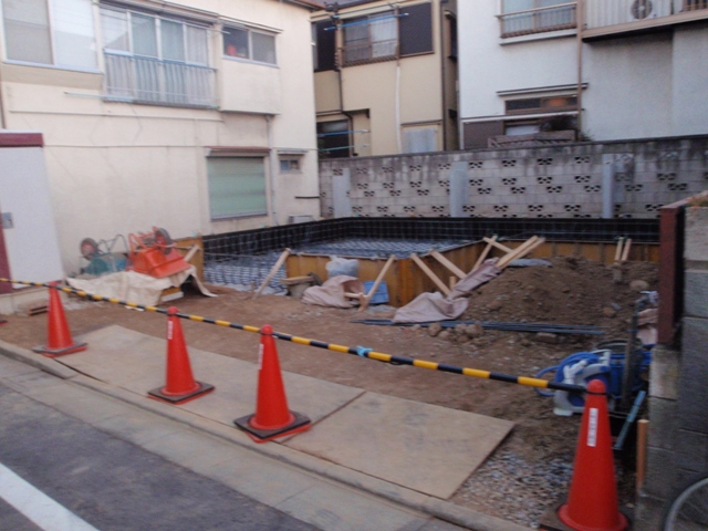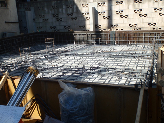 午前中のうちの撮影なので、昨日帰りによってみたら、基礎床の配筋は終わっているようでした。
