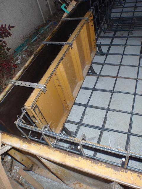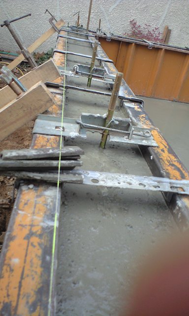 午後は重機は帰り、立ち上がり部分を水平にするための天端レベラー工事