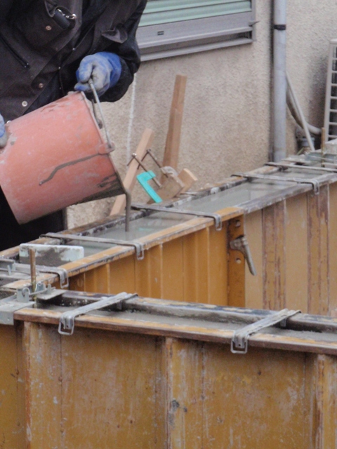 全部一気に入れるとドンドン床部分に流れ出すそうで、様子を見ながら、コンクリートを流し込んでいくようです。