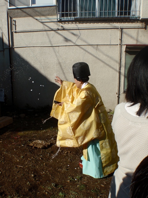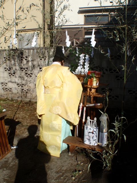 いろいろと写真も撮りたかったんだけど、地鎮祭が始まると、施主は一番前に並ぶので、なんだか写真を取りに行けなかったなぁ。