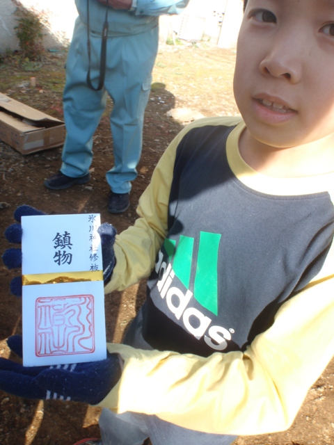 この鎮物は、基礎工事のときに建物の中央に埋めておくとのこと。