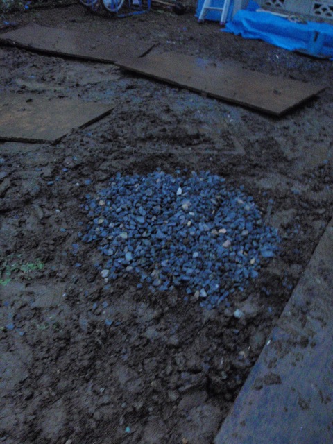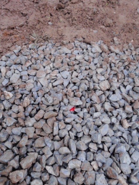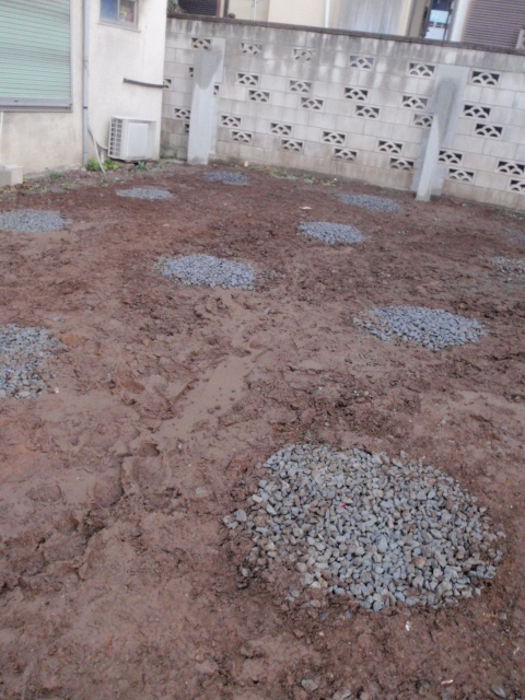 ウチはセメントミルクの代わりに砕石で地盤を固めるのだ。