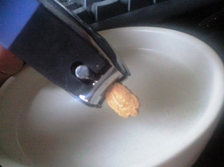 中の実を気づ付けないよう慎重にやらなきゃならないようですが、何個かは傷つけちゃいました。