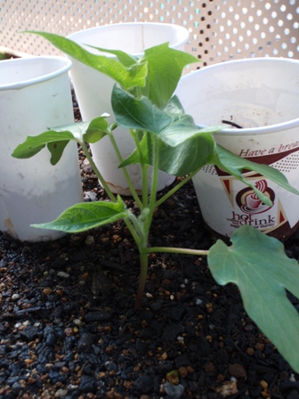 ちょっと前に芽が出た朝顔は、もうこんな感じ