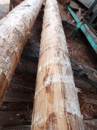 剥きたての丸太はビシャビシャです。何ともみずみずしい。