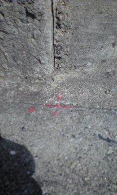 赤いペンキでポイントが打ってあります。