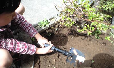さっそくホームセンターでショベルを買ってきて息子と掘ってみることに。