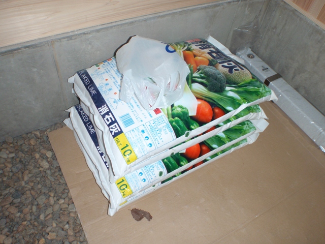 消石灰は区内の園芸店で40kg分を購入。