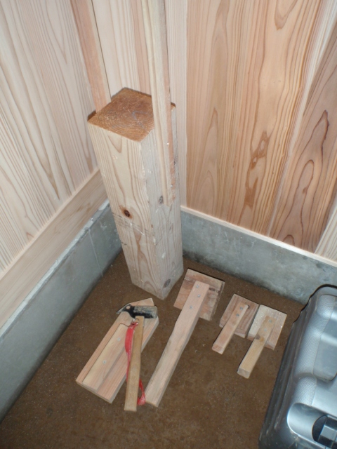 現場工事に使っていた端材の柱を使用したりしてます。