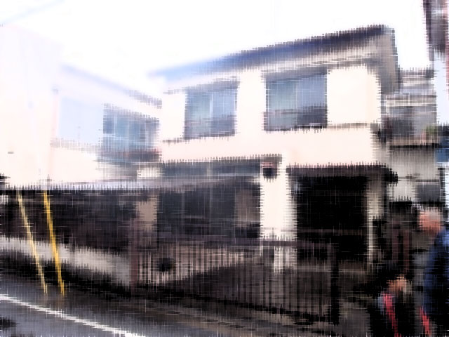 →建物と全面の土間コンクリートと道路の接道部分の塀の解体。